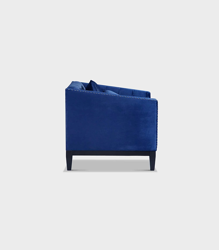 Experience timeless elegance and supreme comfort with the Charcoal Sofa, a masterpiece crafted to elevate your living space. Designed with precision, it features captivating diamond tufting that adds a luxurious touch, while the rustic-colored studs along the frame create a beautiful contrast of sophistication and charm.